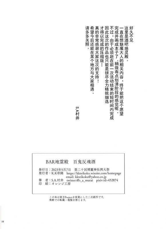 《BAR地灵殿 百鬼反魂酒》目录